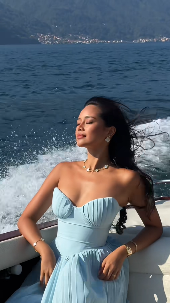 The ethereal oceanic beauty of 'Siena' creates a dreamy and romantic feel. Cut from an ocean blue georgette, the bust features shell shaped pleats and beautifully define your décolletage. The bodice is perfectly boned to cinch the waist. The pleated maxi skirt flows elegantly, ensuring every step is truly mesmerising. Wear yours for those High Summer events and dinner dates.